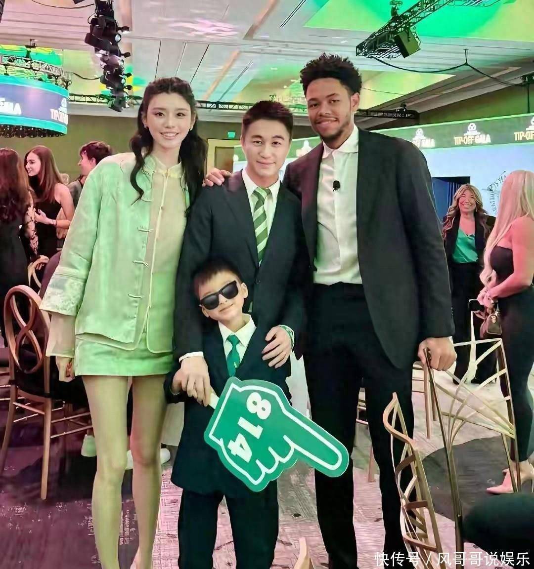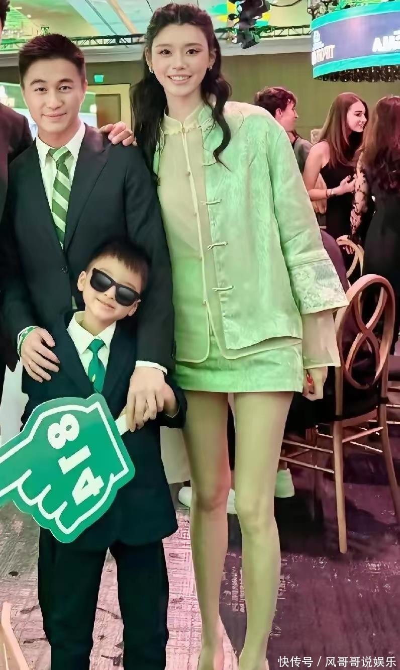 比起奚梦瑶的亮眼造型,一家三口的互动更让人觉得温暖。5岁的何广燊穿了套小西装,浅绿色领带和妈妈的衣服刚好呼应,一看就是奚梦瑶精心搭配的。小家伙遗传了爸妈的好基因,身高远超同龄孩子,快到妈妈腰部了,五官却和何猷君像复制粘贴,皱眉听讲解时的神态简直一个模子刻出来的。